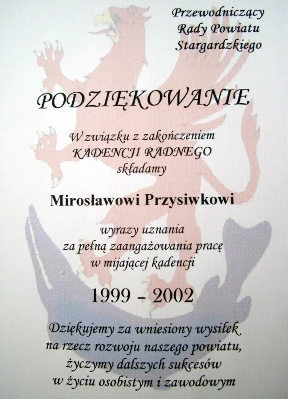 Szanowni Państwo. Moje życie zawodowe całe przeniknięte jest sprawami publicznymi. One właśnie powodują, że kolejny już raz, składam Państwu ofertę wyborczą ze swojego doświadczenia oraz wiedzy samorządowej.