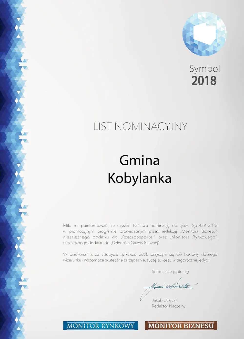 - Nominowany przez „Dziennik Gazeta Prawna” do marki „SYMBOL 2018”